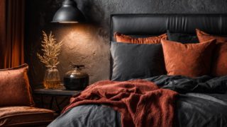 Navy walls create a bold and timeless foundation for the room. Paired with soft textiles and warm lighting, the space feels both elegant and welcoming.