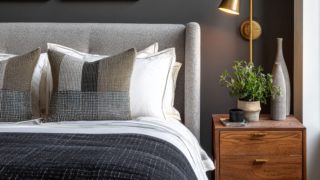 Clean-lined furniture and layered neutral tones make this bedroom feel sophisticated. Pops of texture add warmth without breaking the minimalist palette.